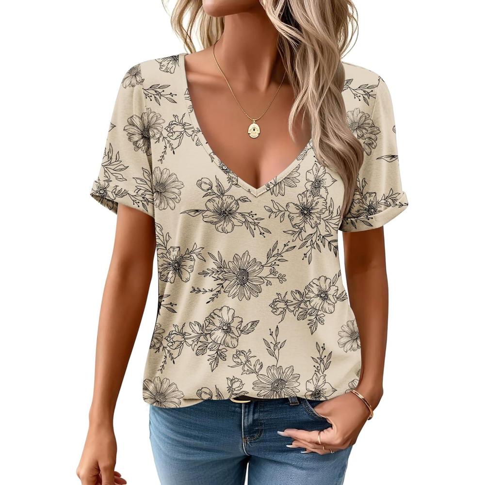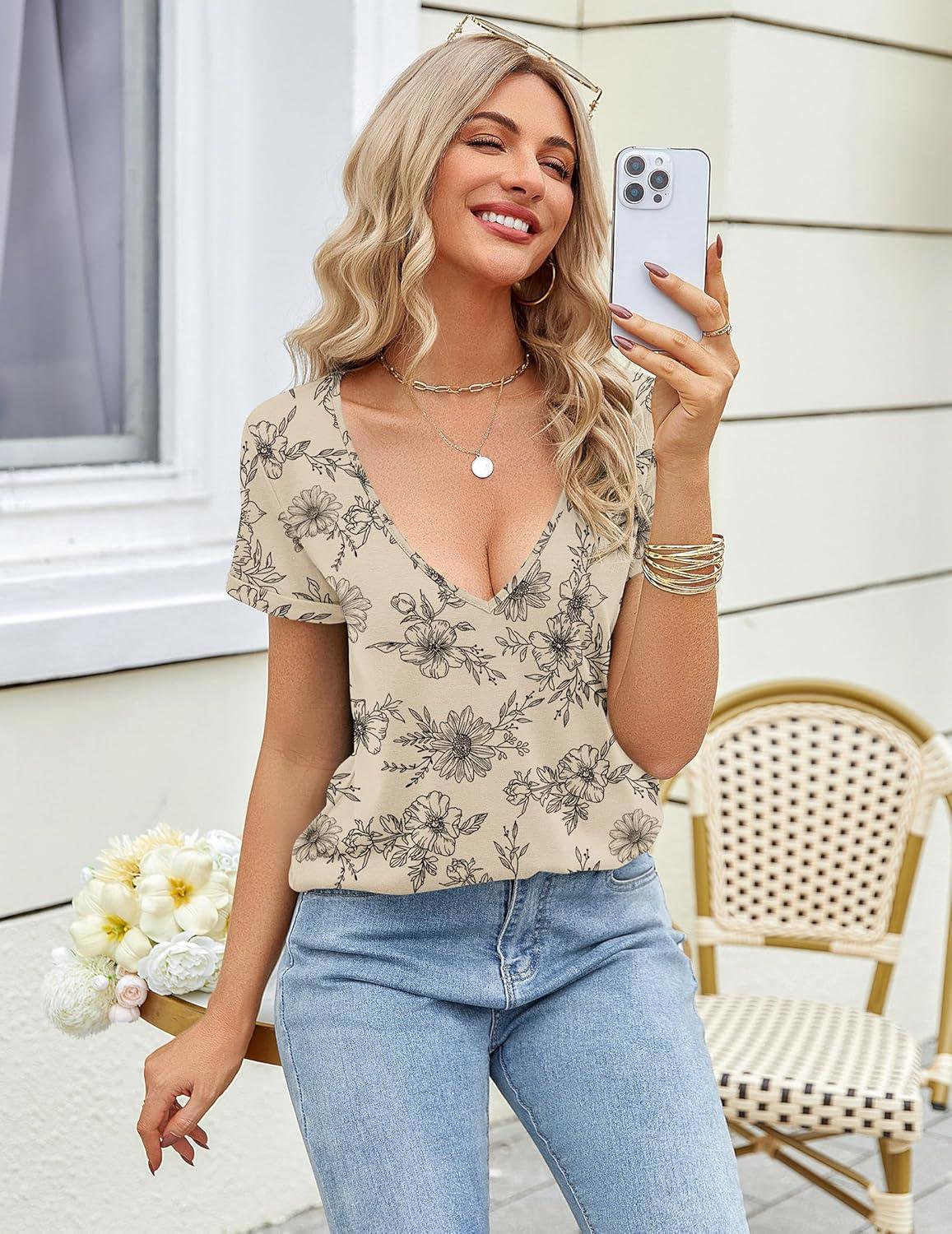 Zeagoo Womens Tops Deep V Neck Shirts Summer Low Cut Top Sexy Short Sleeve Tshirts Trendy Clothes Fashion Clothing S-3XL(Sf103)