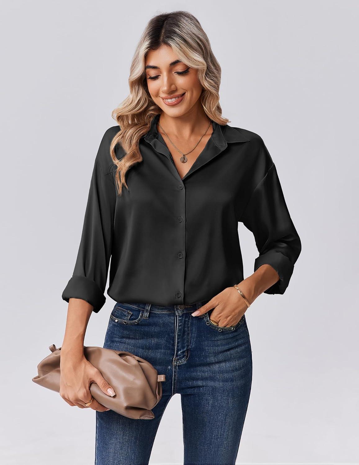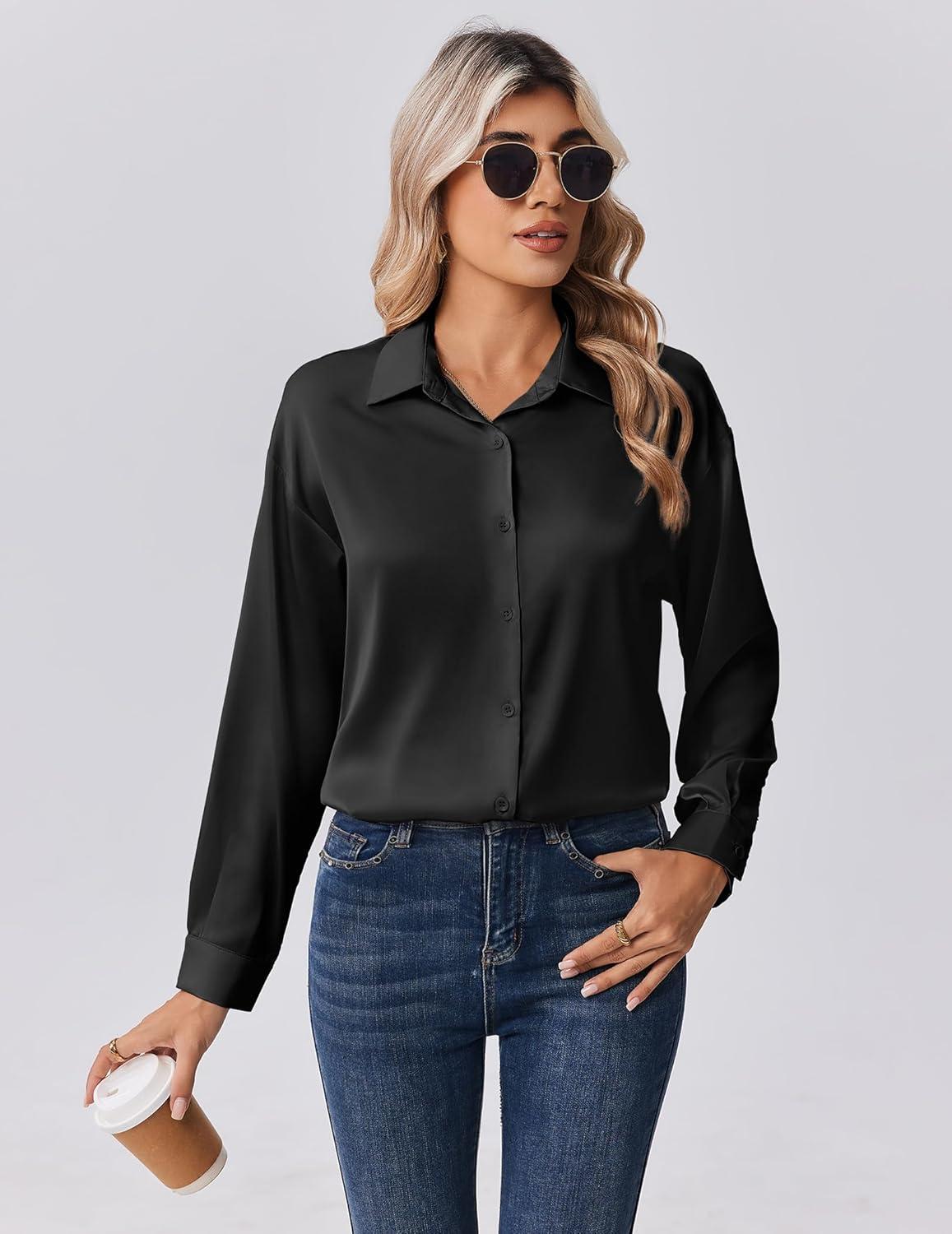 Our clearance event features the best deals on Zeagoo Womens Tops Long Sleeve Satin Silk Button Down Shirts Casual Business Dressy Blouses Fall Clothes(Black) and accessories. Shop now!