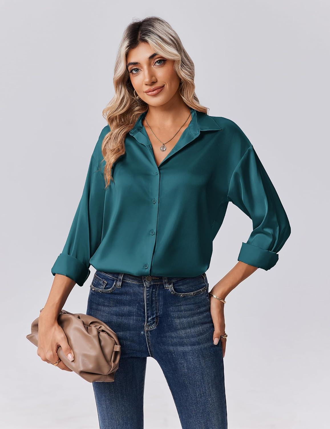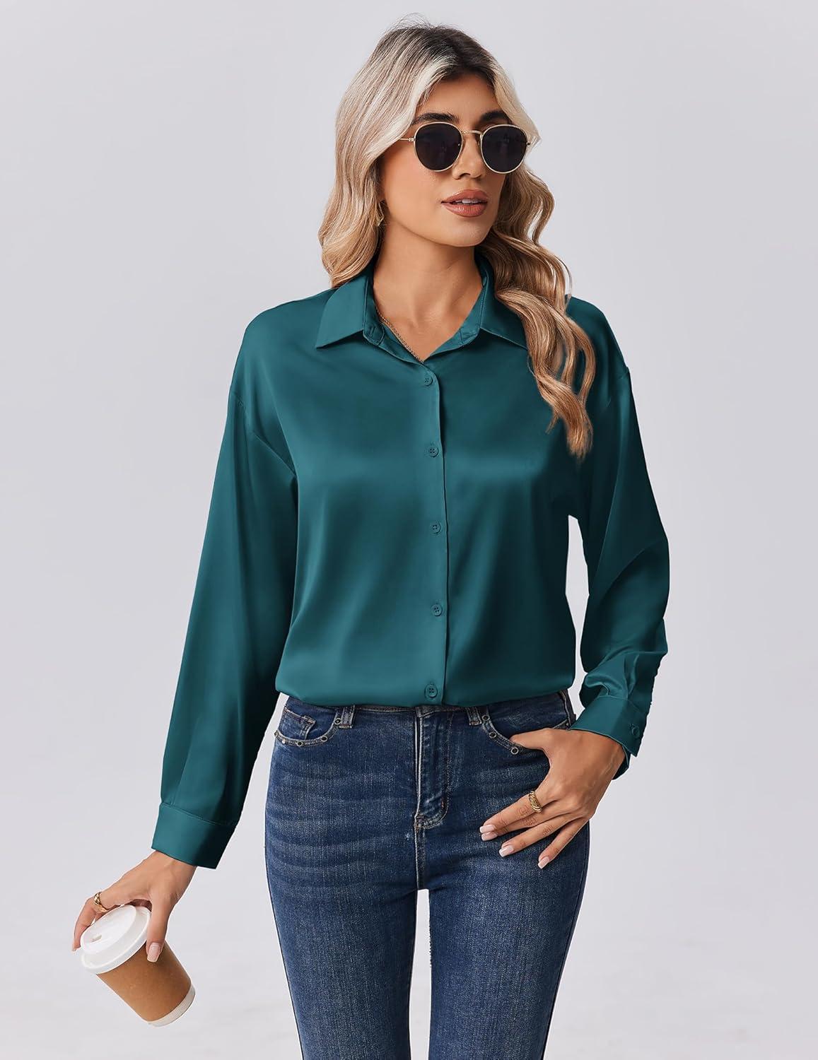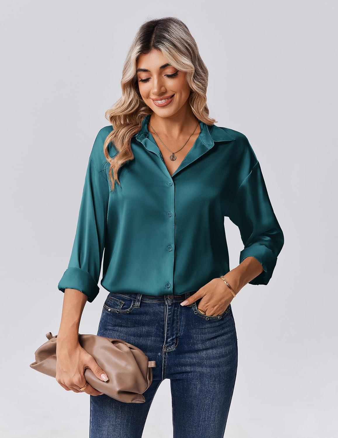 Our clearance event features the best deals on Zeagoo Womens Tops Long Sleeve Satin Silk Button Down Shirts Casual Business Dressy Blouses Fall Clothes(Peacock Blue) and accessories. Shop now!