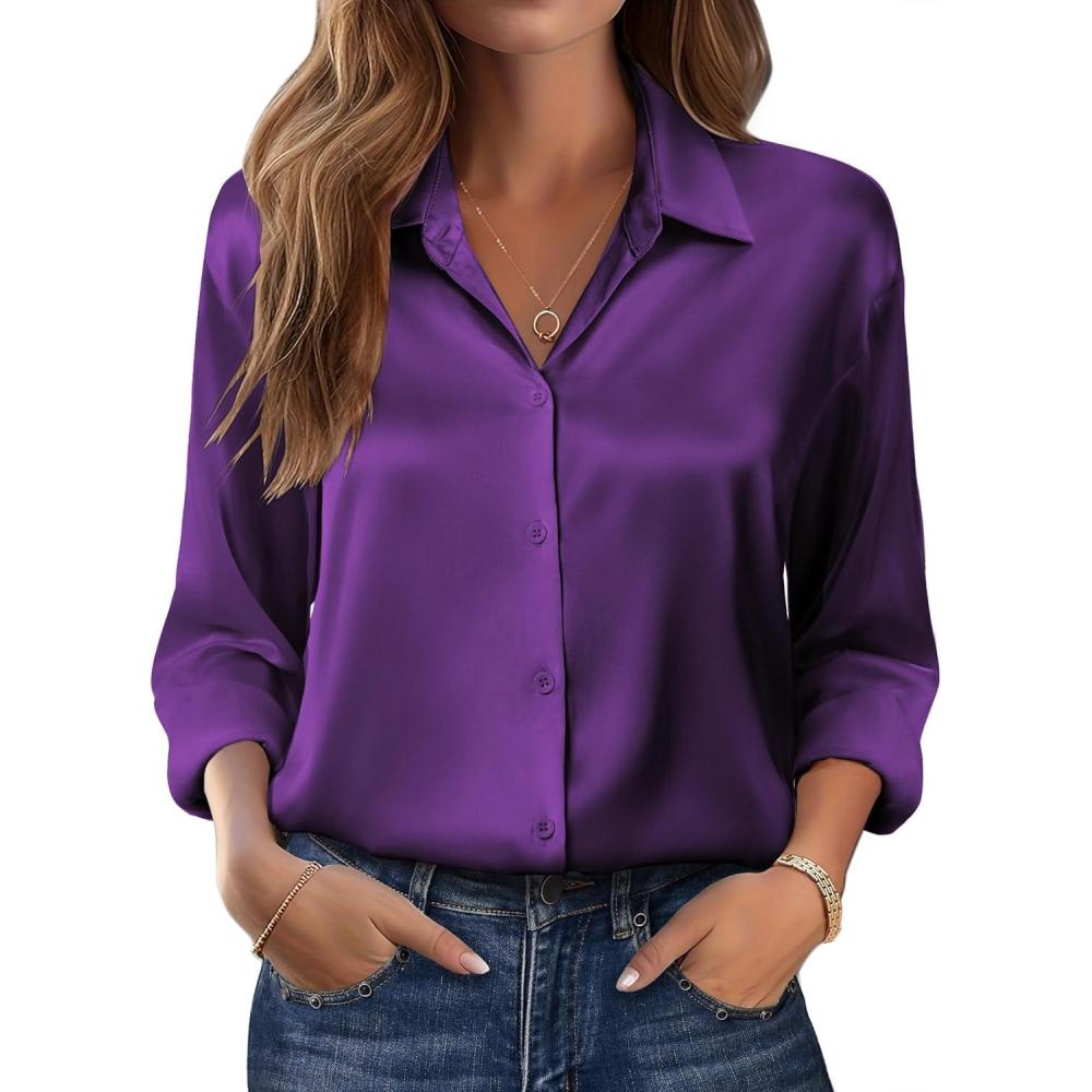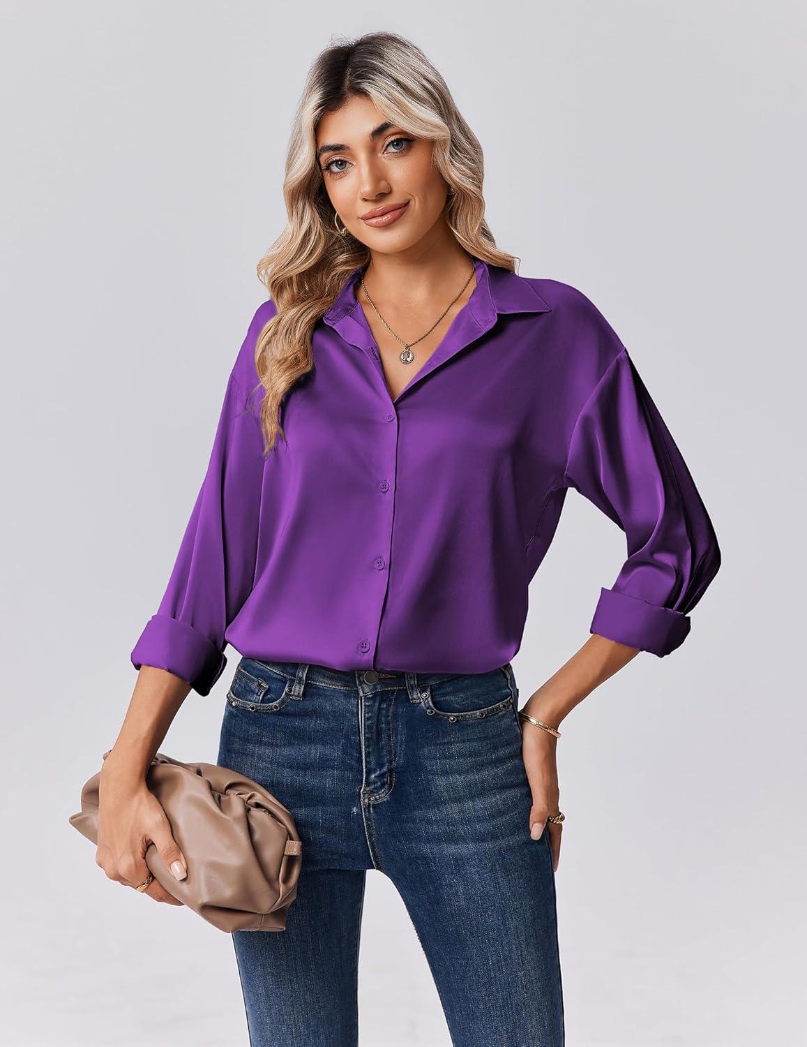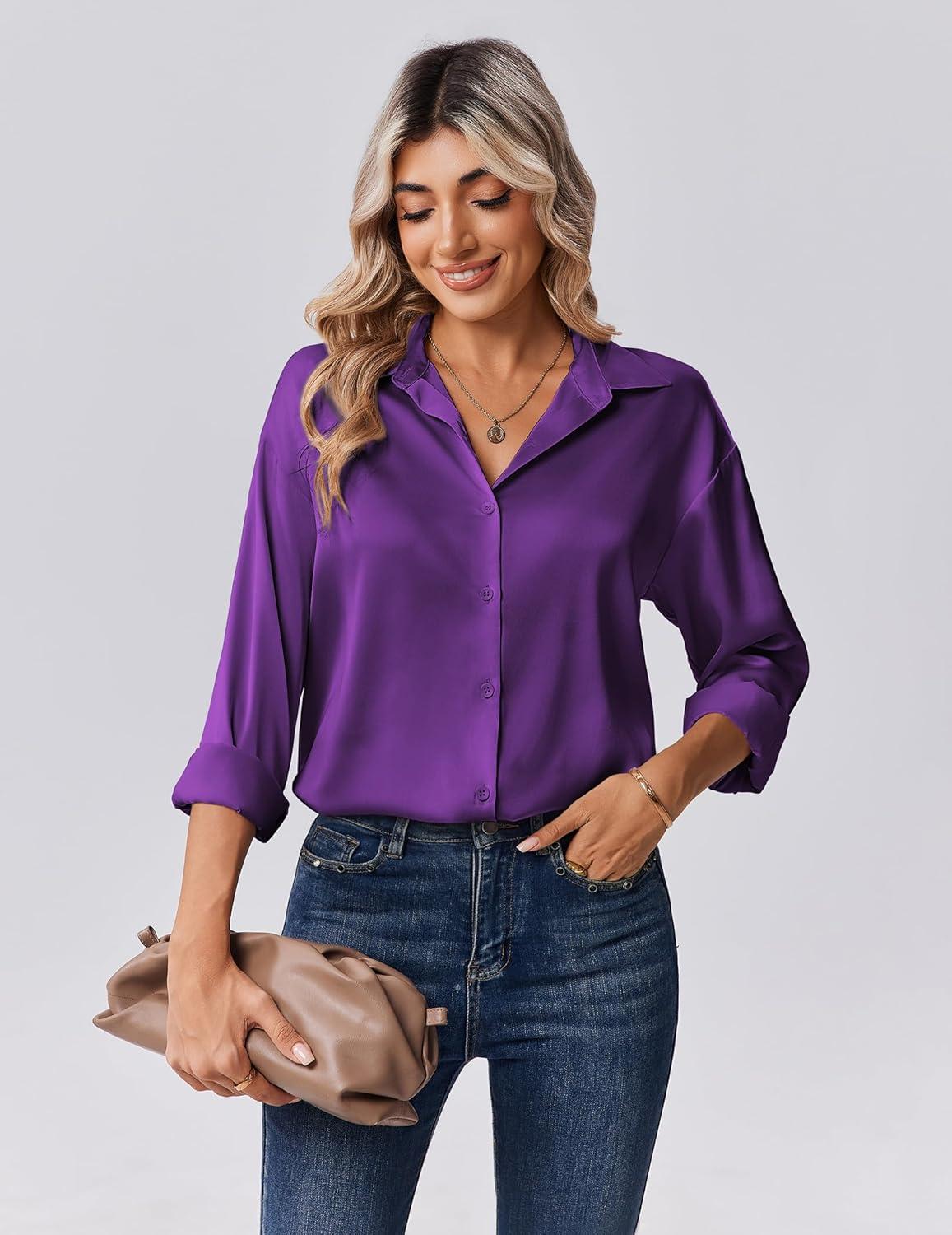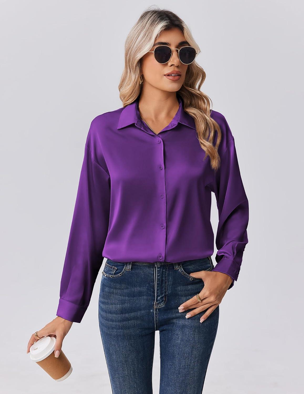 Get up to 60% off on Zeagoo Womens Tops Long Sleeve Satin Silk Button Down Shirts Casual Business Dressy Blouses Fall Clothes(Purple) styles during our winter sale event.