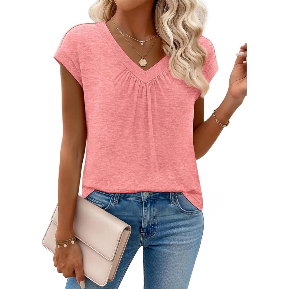 Zeagoo Womens Tops Short Sleeve V Neck Shirts Summer Dressy Casual Business Clothes Work Blouses Fashion Clothing Outfits(A01 Coral)