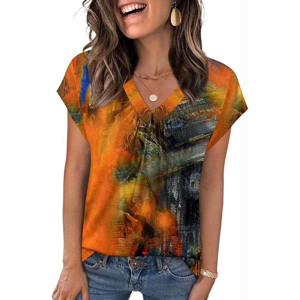 Zeagoo Womens Tops Short Sleeve V Neck Shirts Summer Dressy Casual Business Clothes Work Blouses Fashion Clothing Outfits(Cx272)