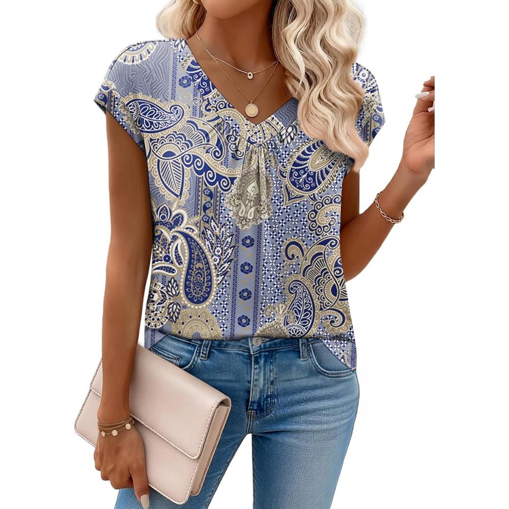 Zeagoo Womens Tops Short Sleeve V Neck Shirts Summer Dressy Casual Business Clothes Work Blouses Fashion Clothing Outfits(Mz913)