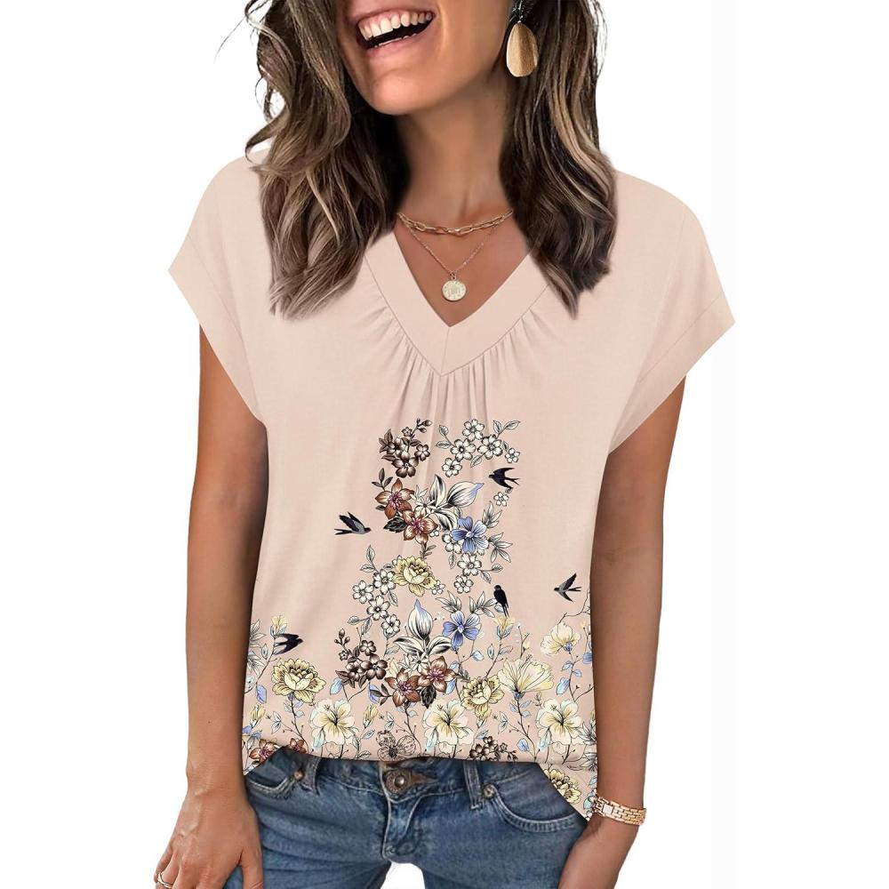 Zeagoo Womens Tops Short Sleeve V Neck Shirts Summer Dressy Casual Business Clothes Work Blouses Fashion Clothing Outfits(Sf103 Boho)