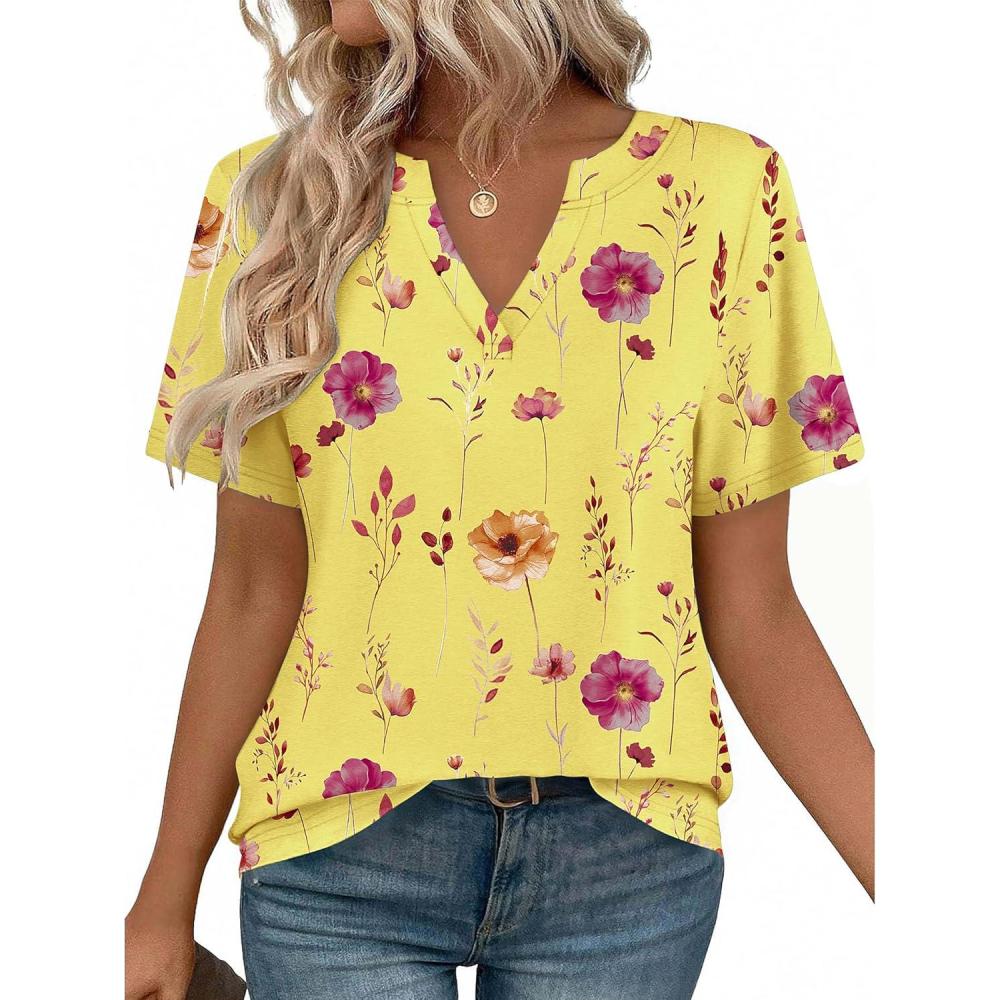 Zeagoo Womens Tops Short Sleeve V Neck Tee Shirts Cute Dressy Casual Clothing Business Work Blouse(Yellow Flowers Bf351)