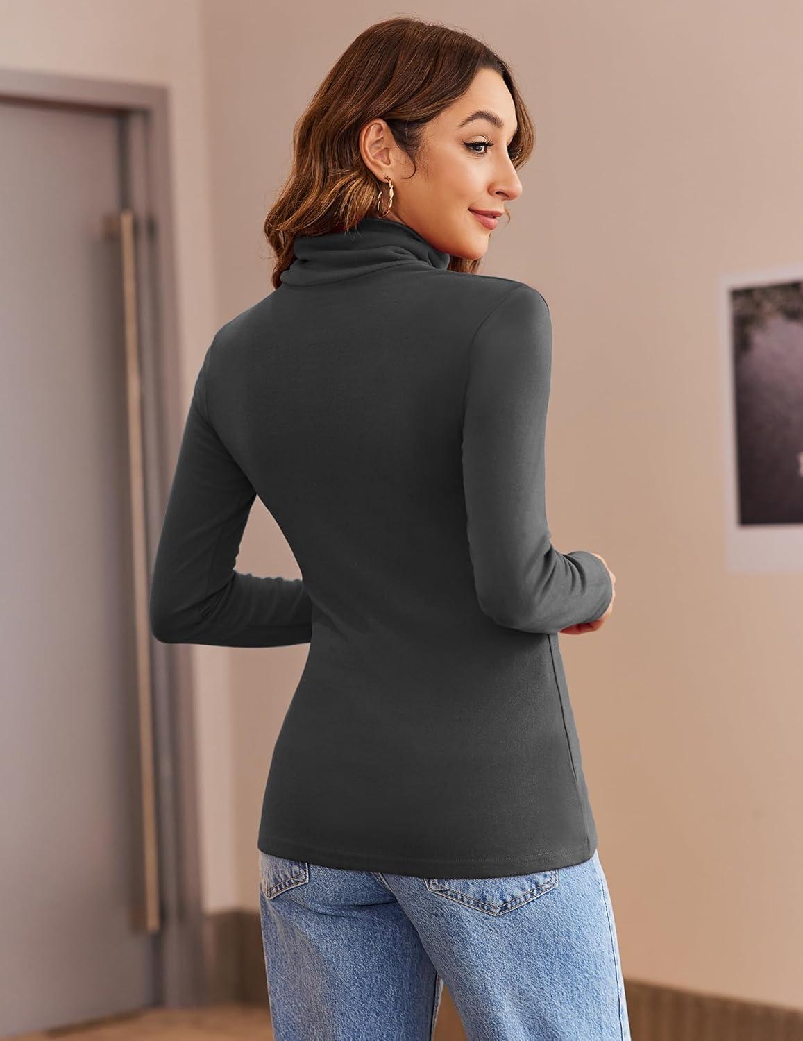 Zeagoo Womens Turtleneck Long Sleeve Shirts Soft Thermal Underwear Fall Fashion 2024 Tight Basic Layer Tops(Grey)