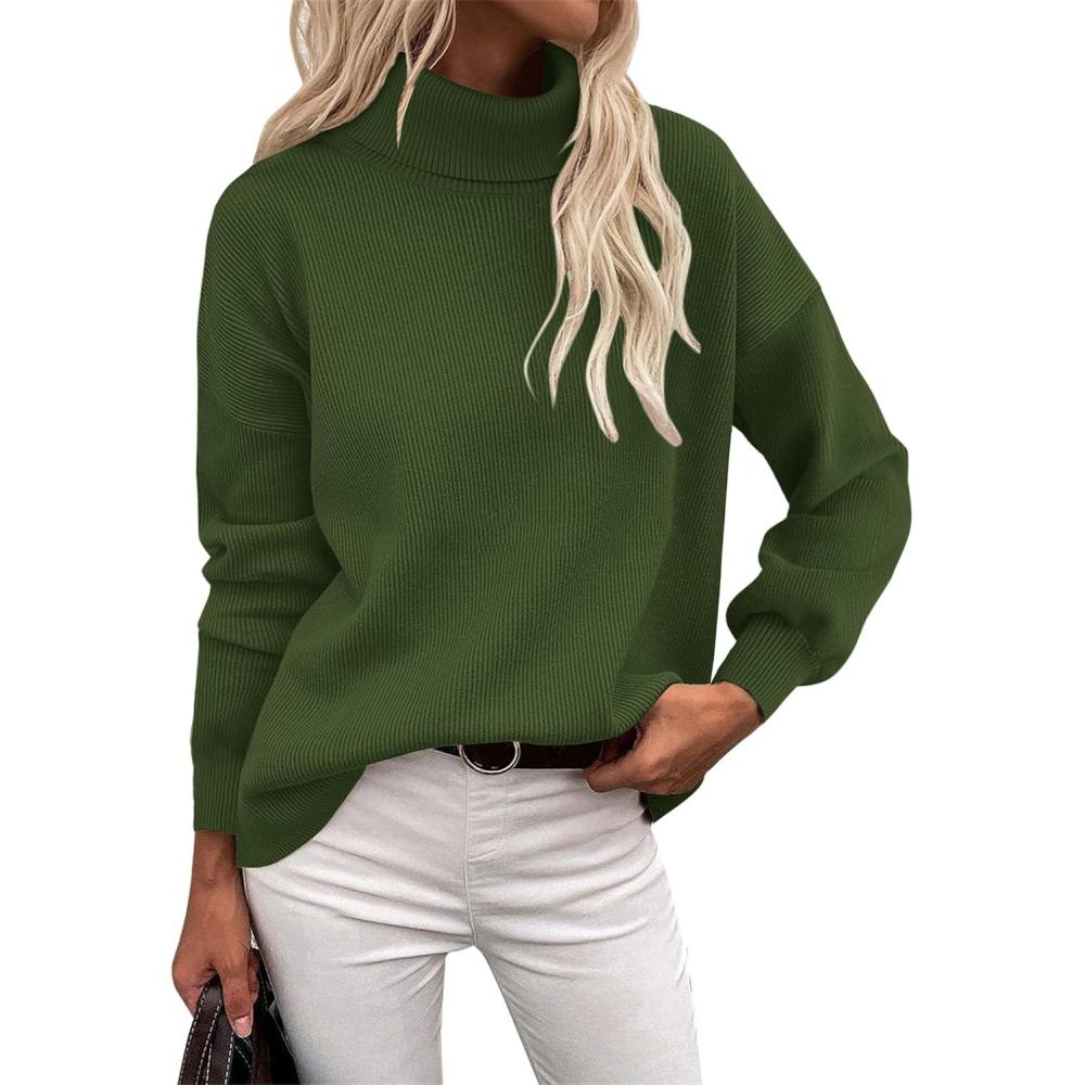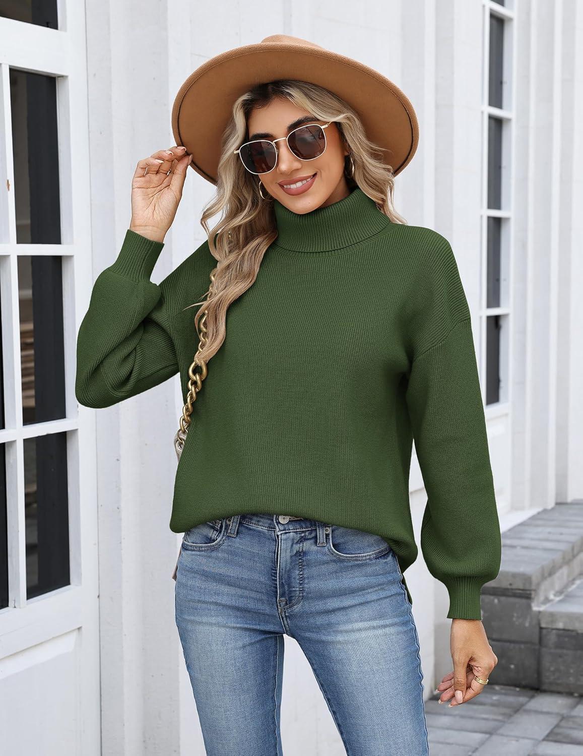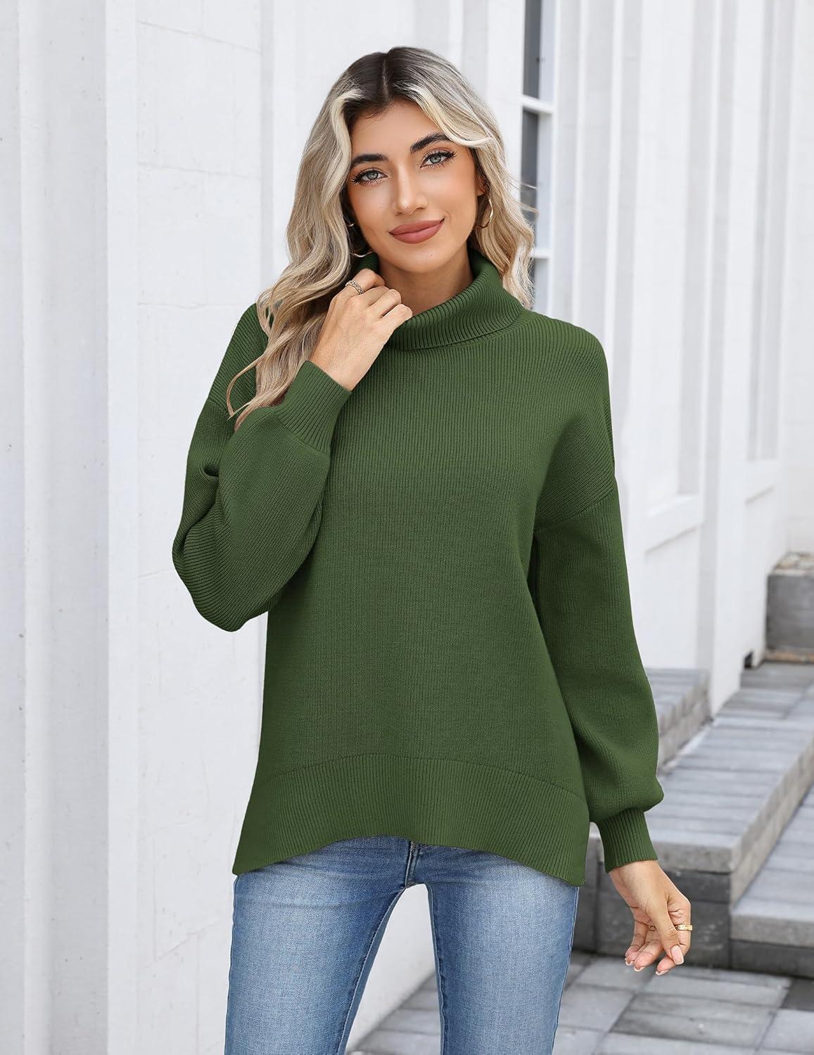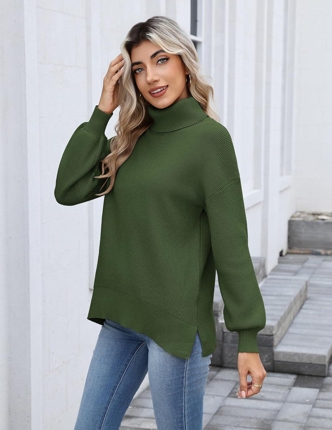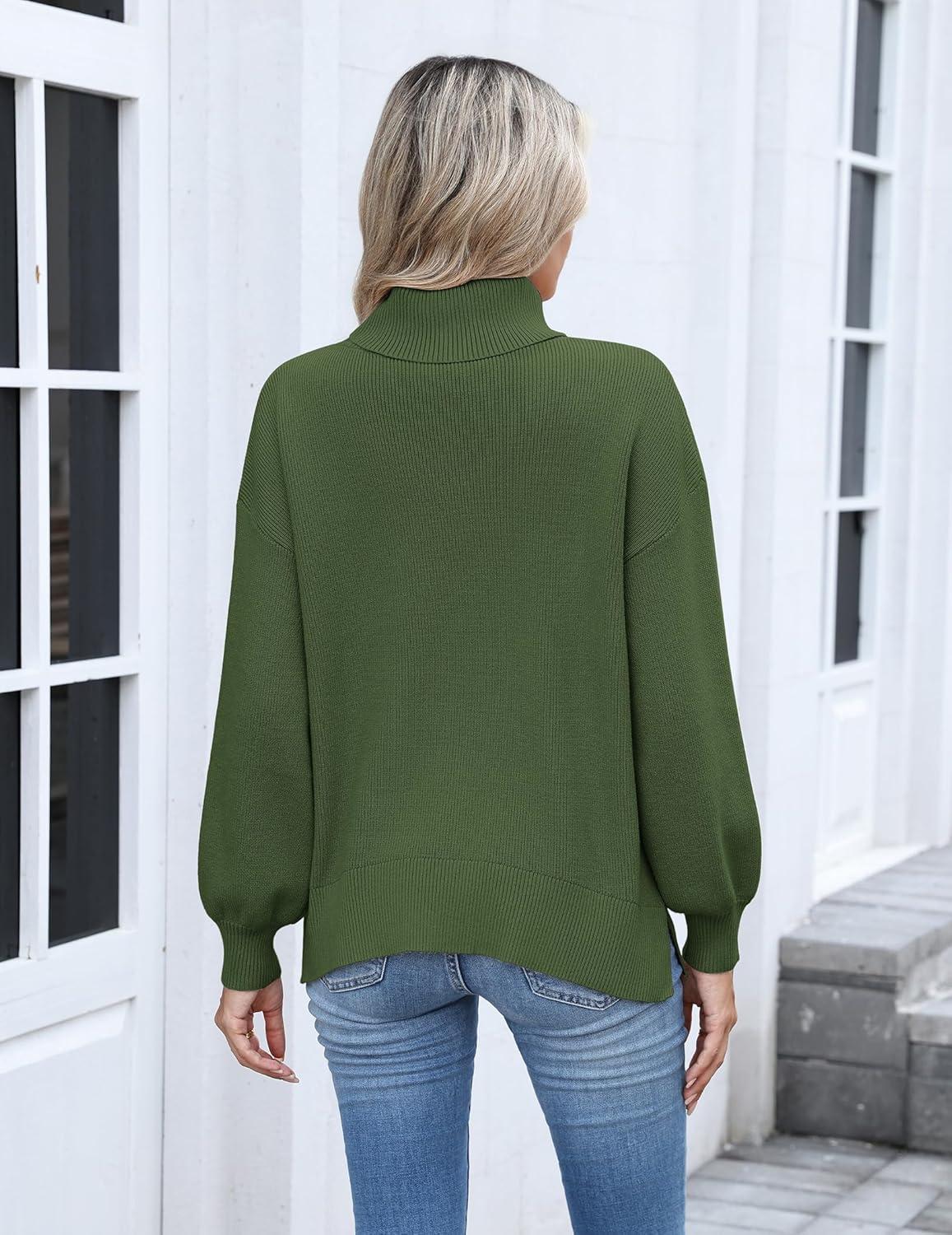 Zeagoo Women’s Turtleneck Sweater 2025 Fall Winter Chunky Knit Sweaters Casual Side Slit Pullover Jumper Top(Army Green)