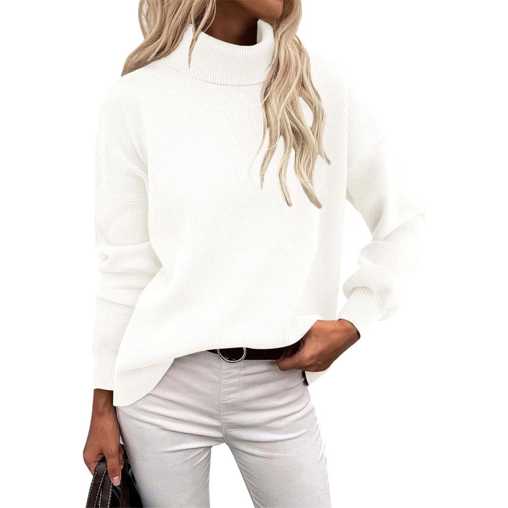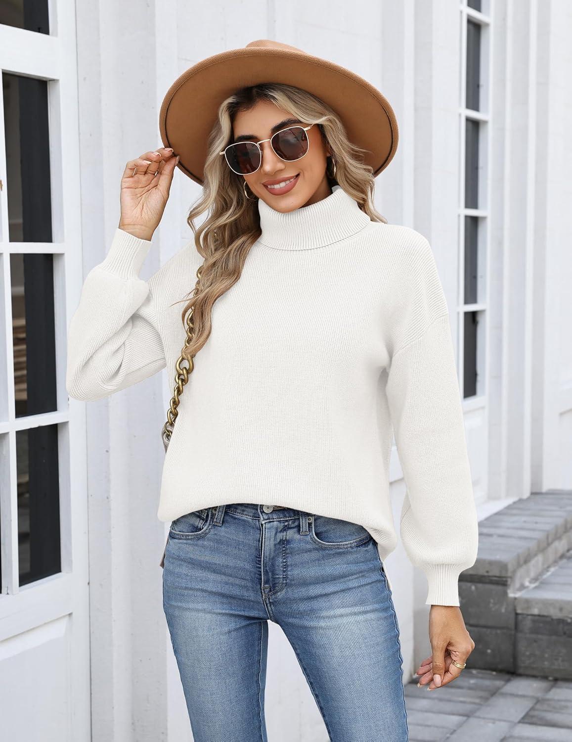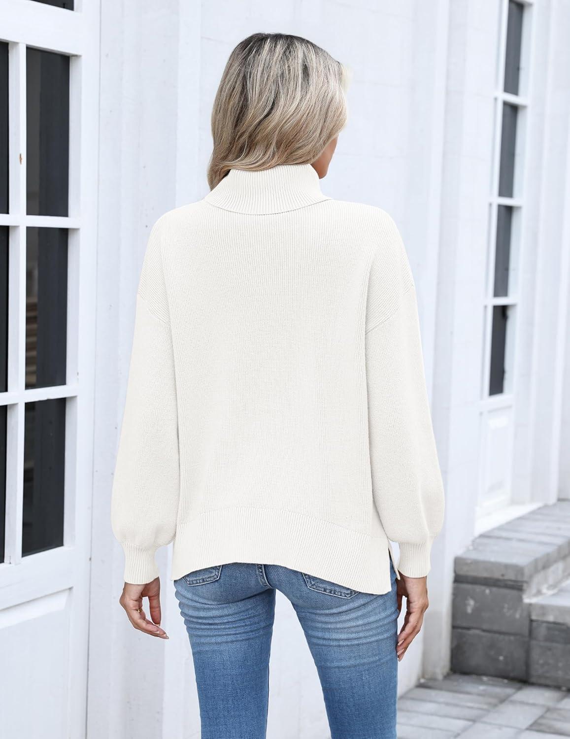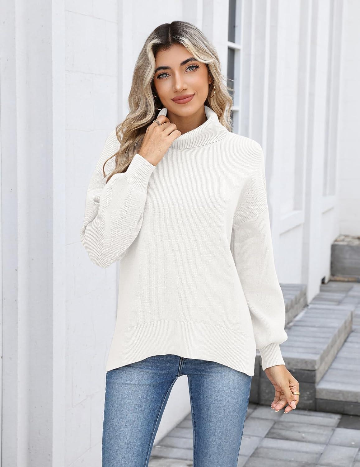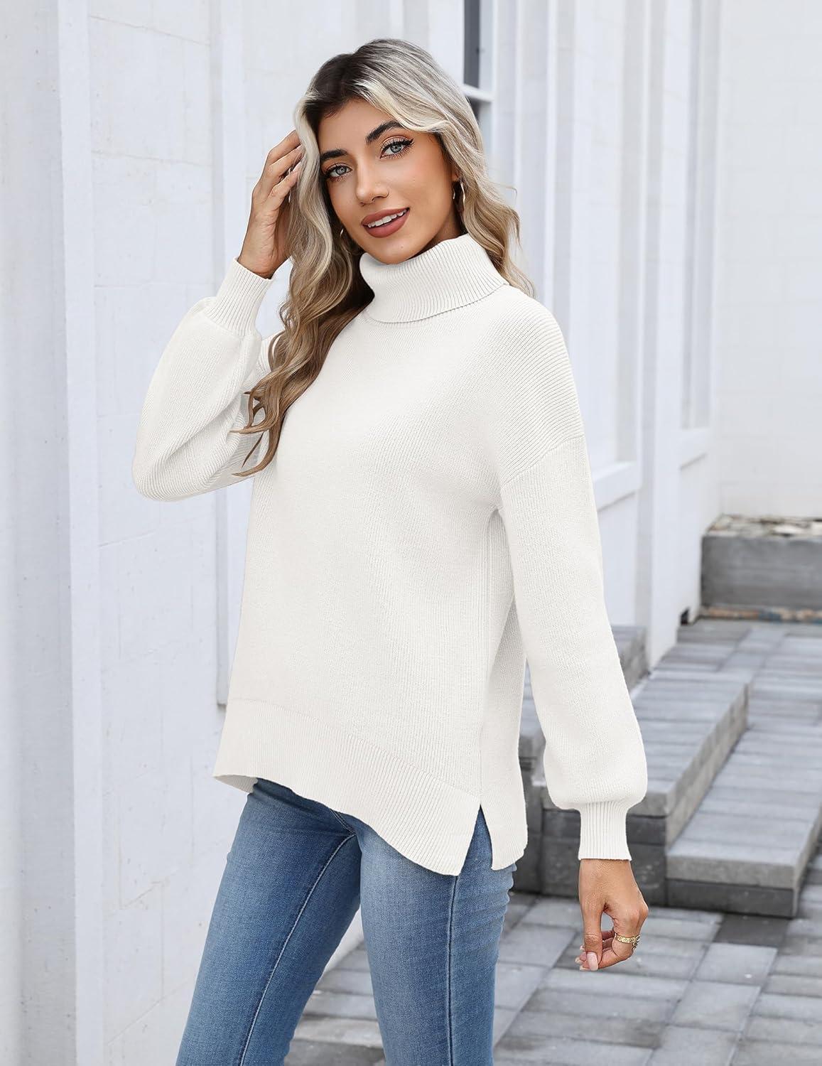 Zeagoo Women’s Turtleneck Sweater 2025 Fall Winter Chunky Knit Sweaters Casual Side Slit Pullover Jumper Top(White)