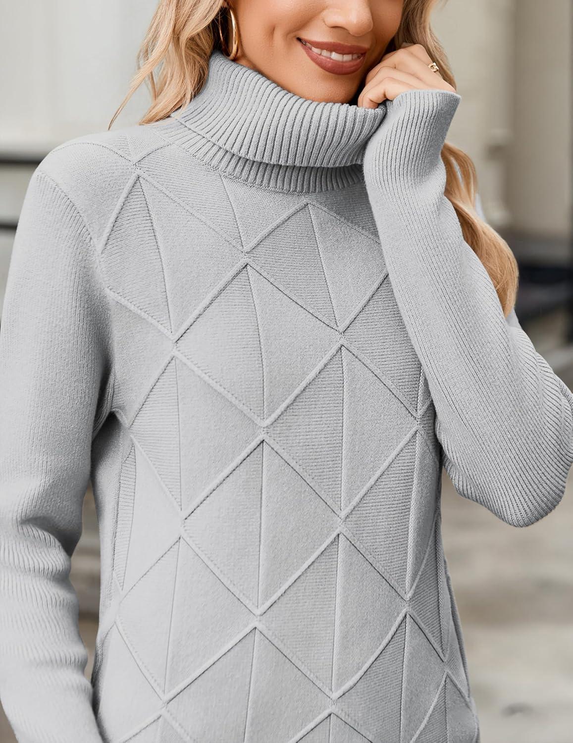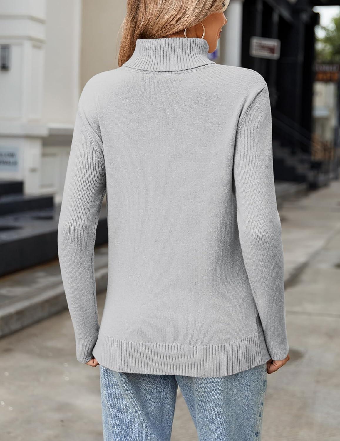 Zeagoo Women’s Turtleneck Sweater Fall Winter 2025 Long Sleeve Chunky Knitted Trendy Pullover Tops(Gray)