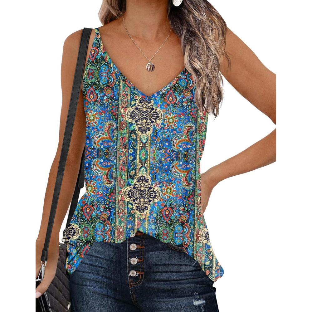 Zeagoo Womens V Neck Camisole Tank Top Strap Sleeveless T Shirt Casual Loose Vest Blouse – S-XXL(Mz779)
