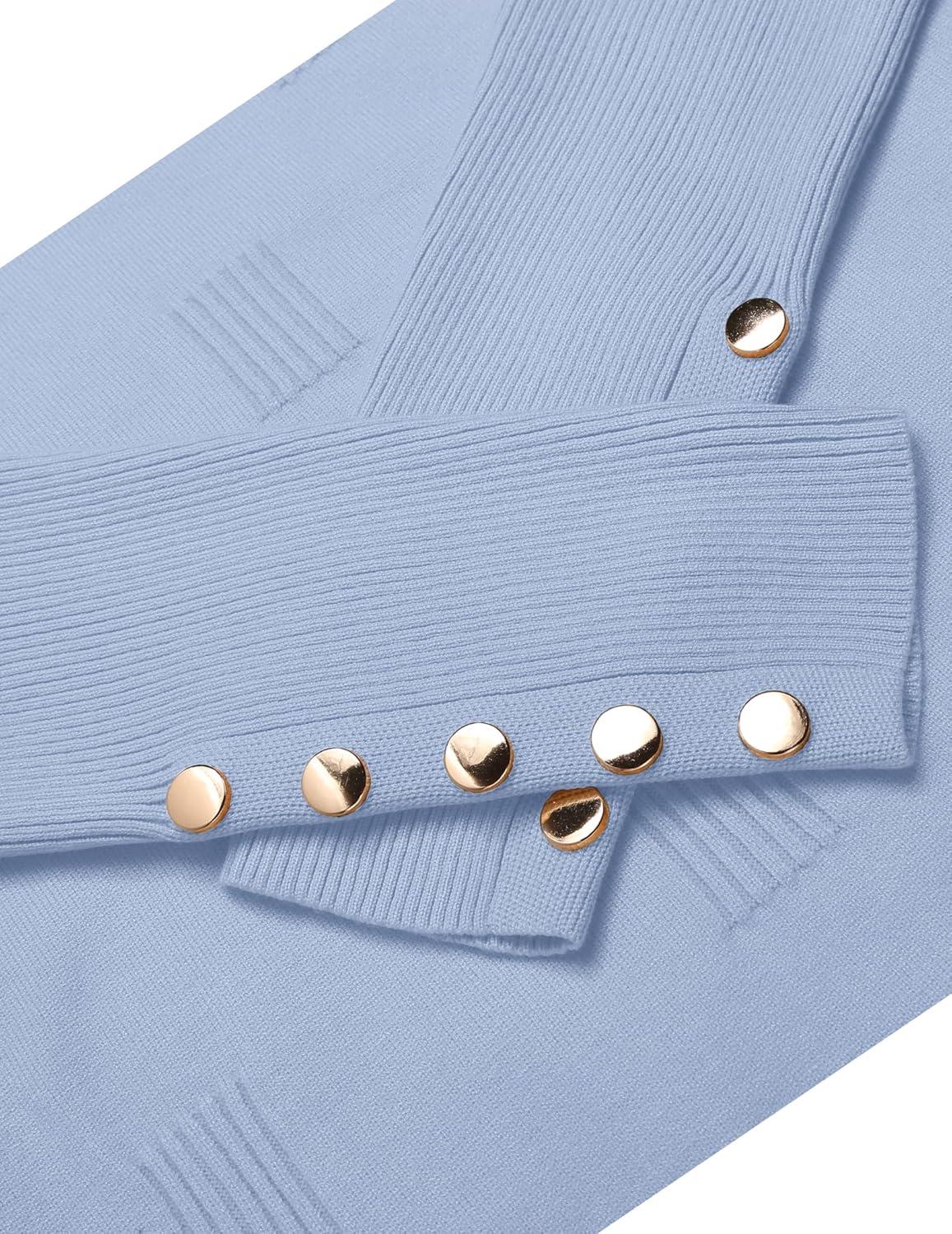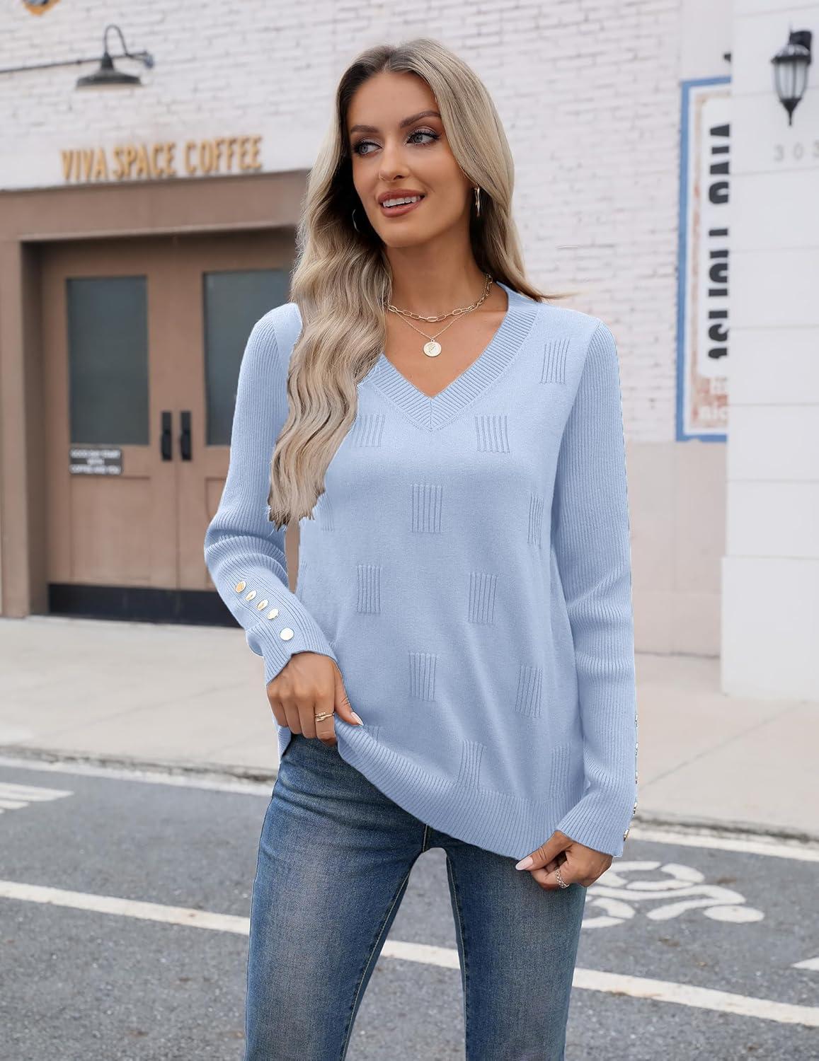 Zeagoo Womens V Neck Sweaters Shirts Long Sleeve Lightweight Ribbed Knit Pullover Sweater Blouse Tops with Buttons Oufits(Light Blue)