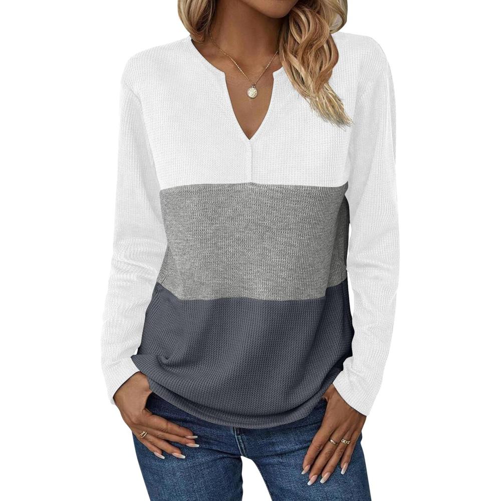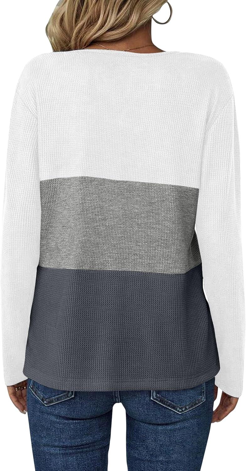 Zeagoo Women’s Waffle Shirts V Neck Long Sleeve Tops Color Block T-Shirts Casual Pullover Tunics 2025 Fashion Basic Tees(White/Gray/Charcoal)