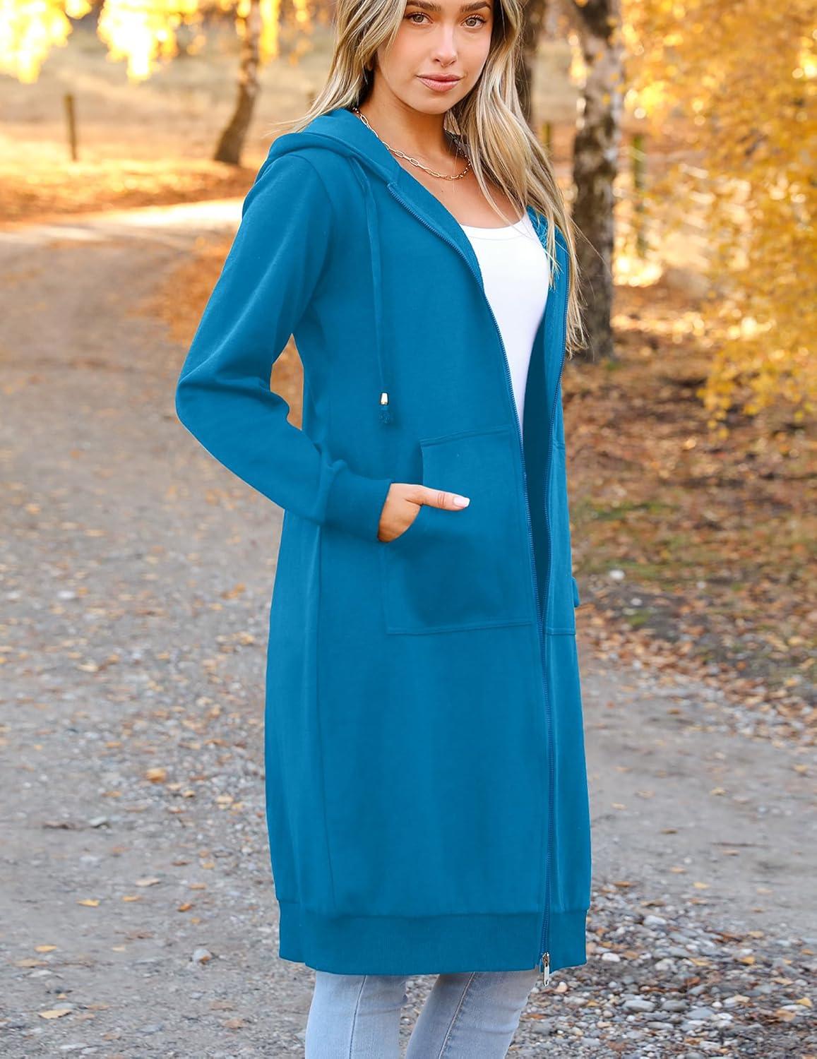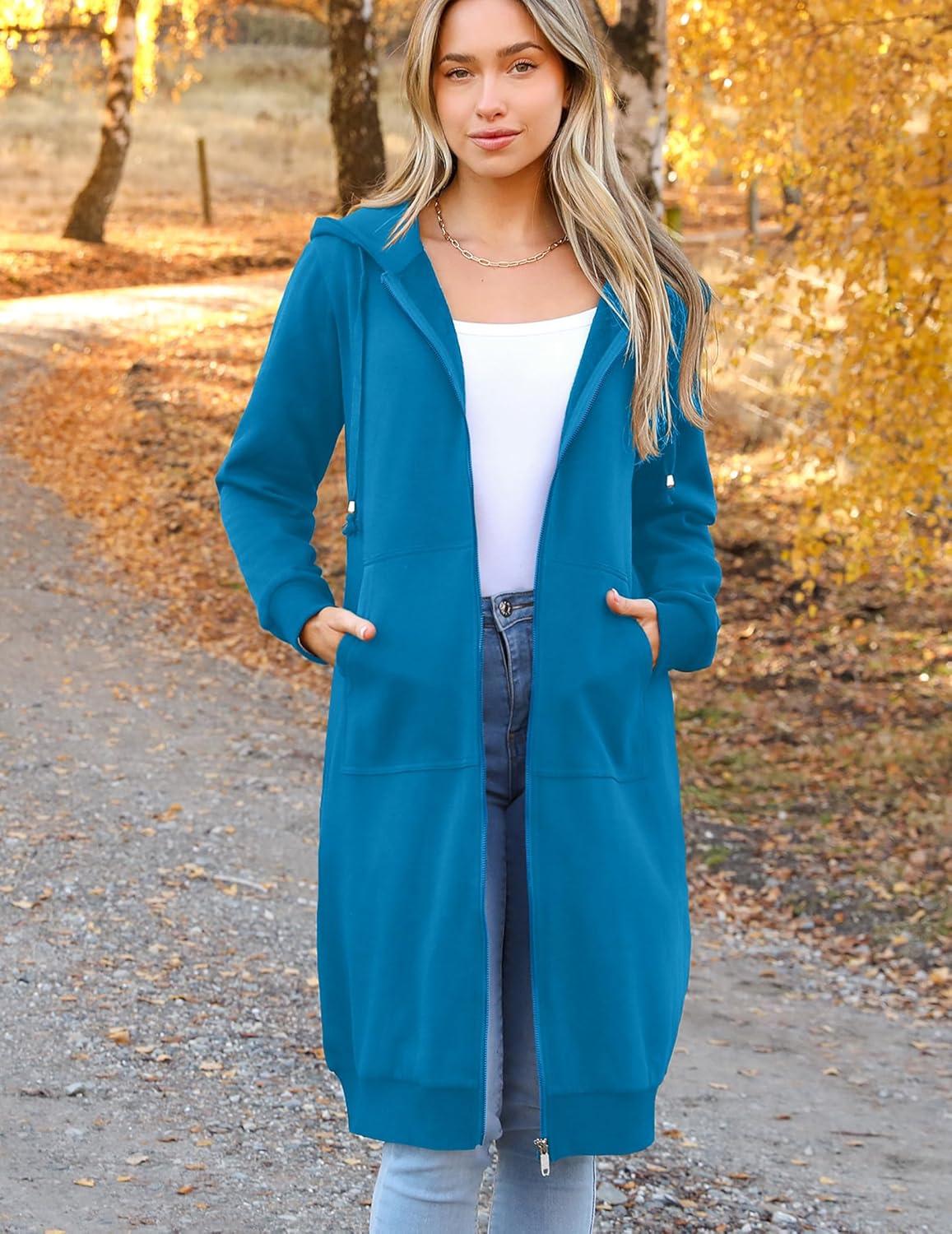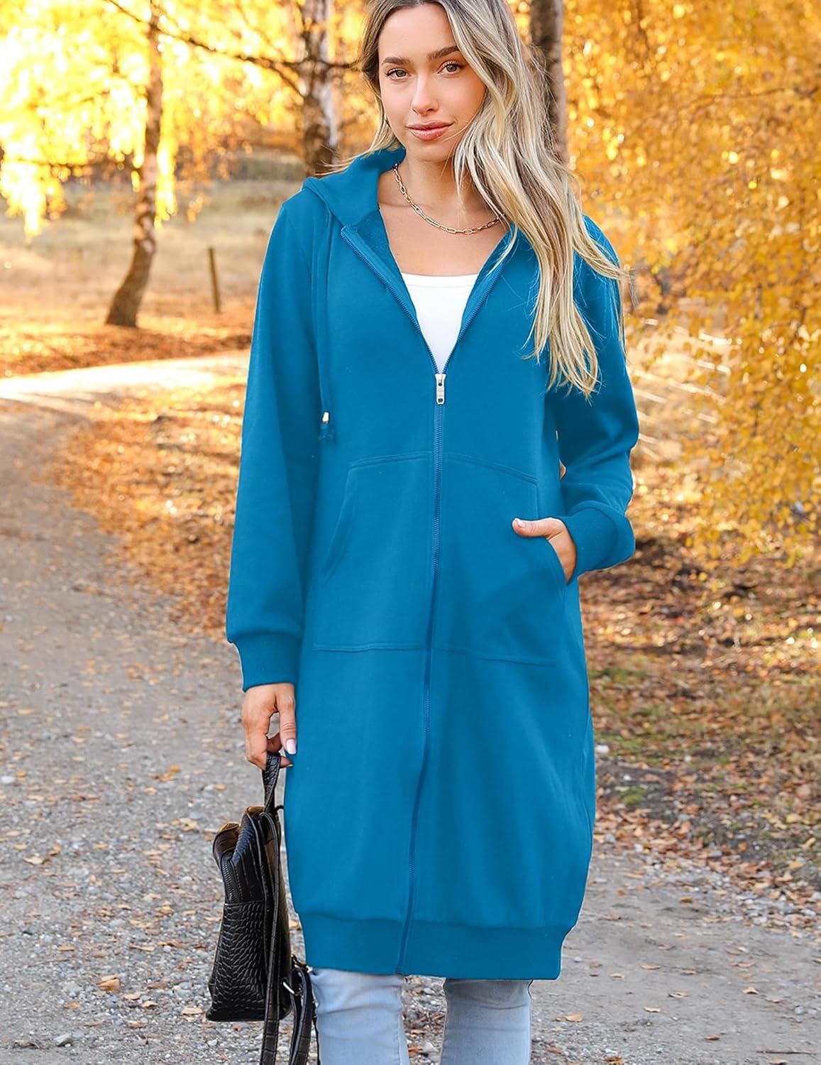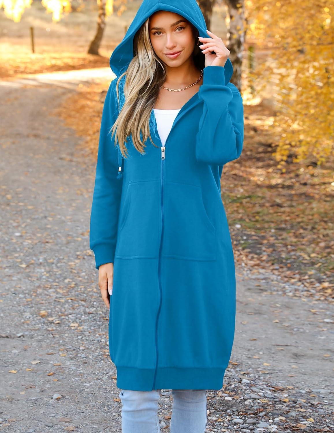 Zeagoo Women’s Zip Up Hoodies Oversized Fleece Long Tunic Sweatshirts Casual Long Sleeve 2026 Fall Hoodie Jacket Coat(Blue)
