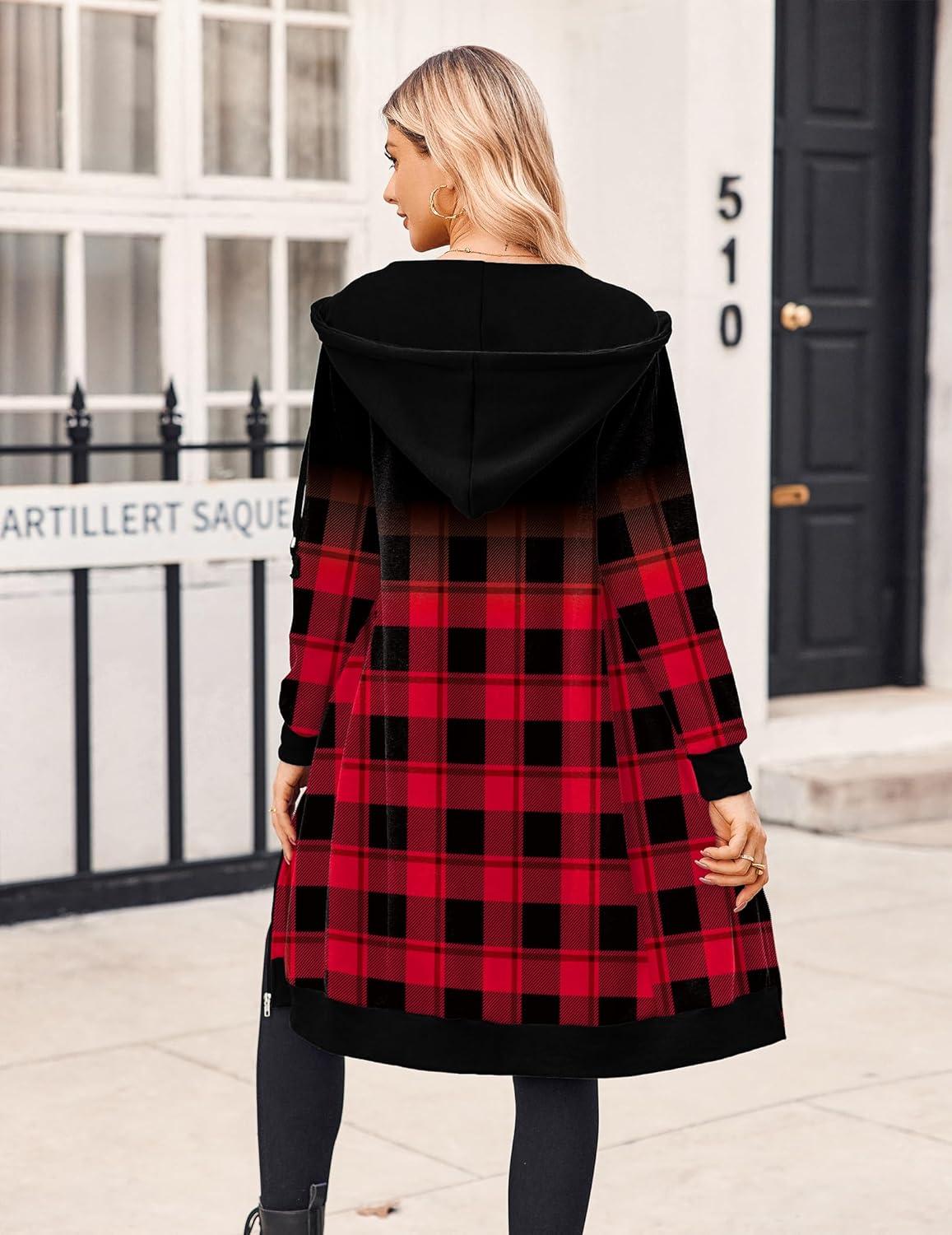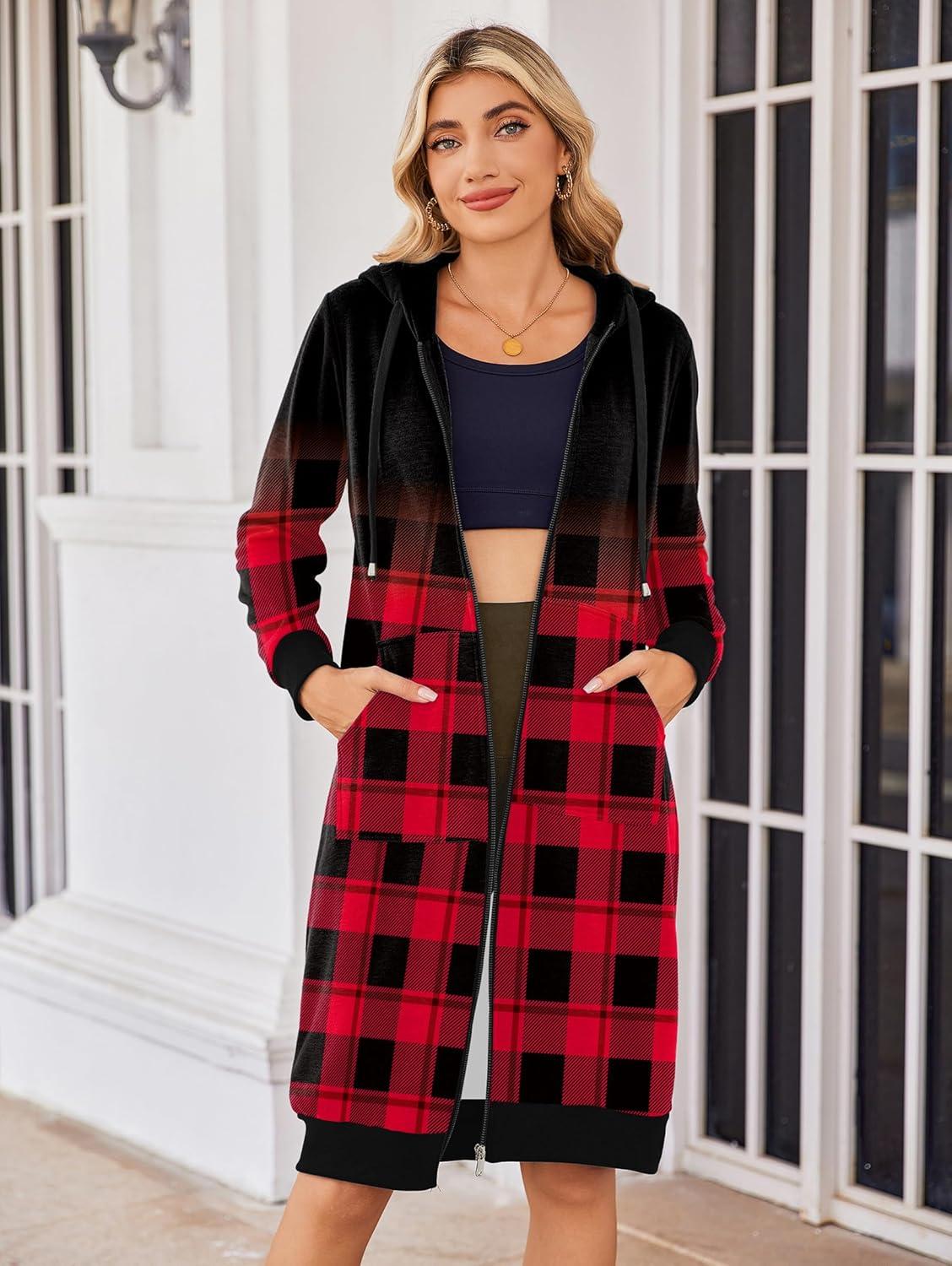 Zeagoo Women’s Zip Up Hoodies Oversized Fleece Long Tunic Sweatshirts Casual Long Sleeve 2026 Fall Hoodie Jacket Coat(Check Pattern)