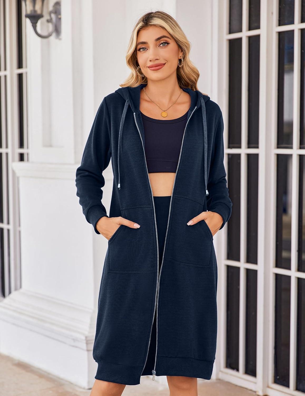 Zeagoo Women’s Zip Up Hoodies Oversized Fleece Long Tunic Sweatshirts Casual Long Sleeve 2026 Fall Hoodie Jacket Coat(Navy)