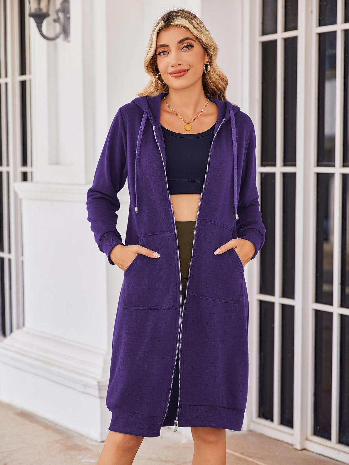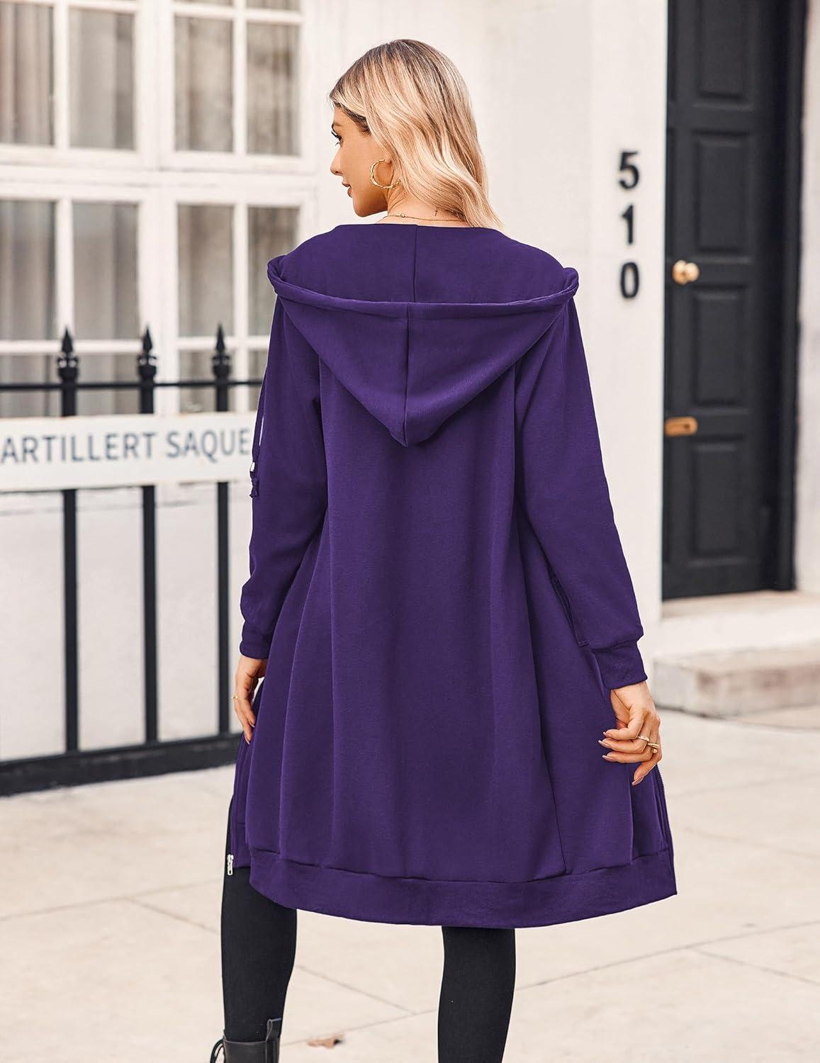Zeagoo Women’s Zip Up Hoodies Oversized Fleece Long Tunic Sweatshirts Casual Long Sleeve 2026 Fall Hoodie Jacket Coat(Purple)
