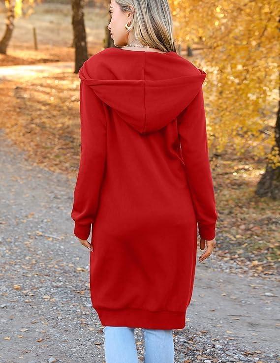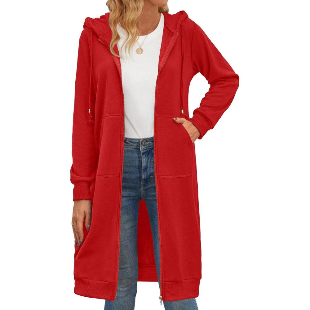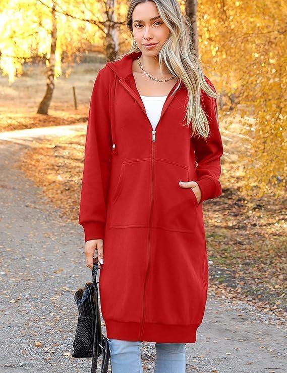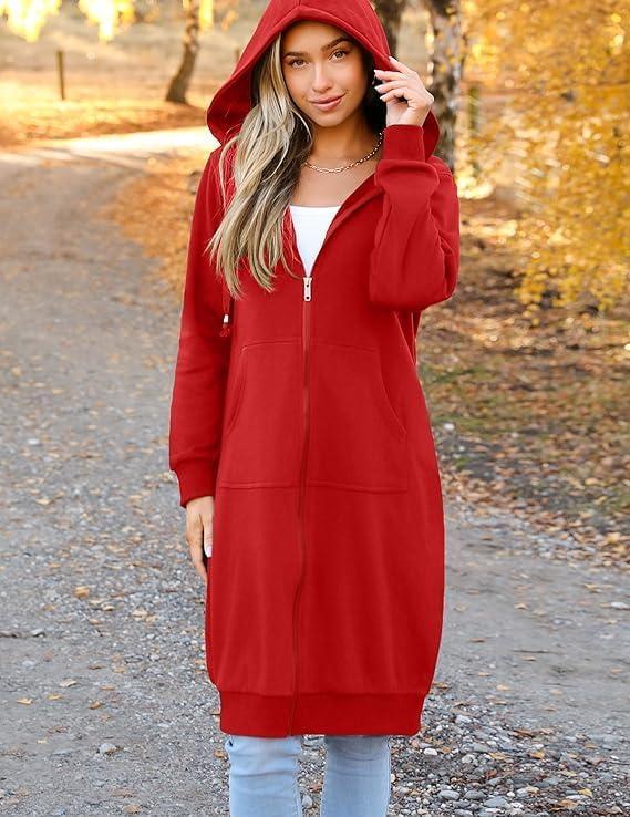 Zeagoo Women’s Zip Up Hoodies Oversized Fleece Long Tunic Sweatshirts Casual Long Sleeve 2026 Fall Hoodie Jacket Coat(Red)
