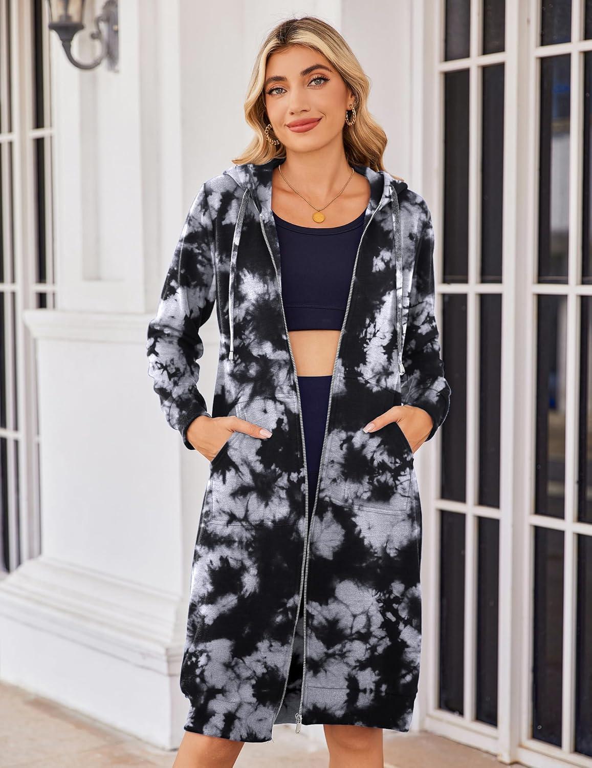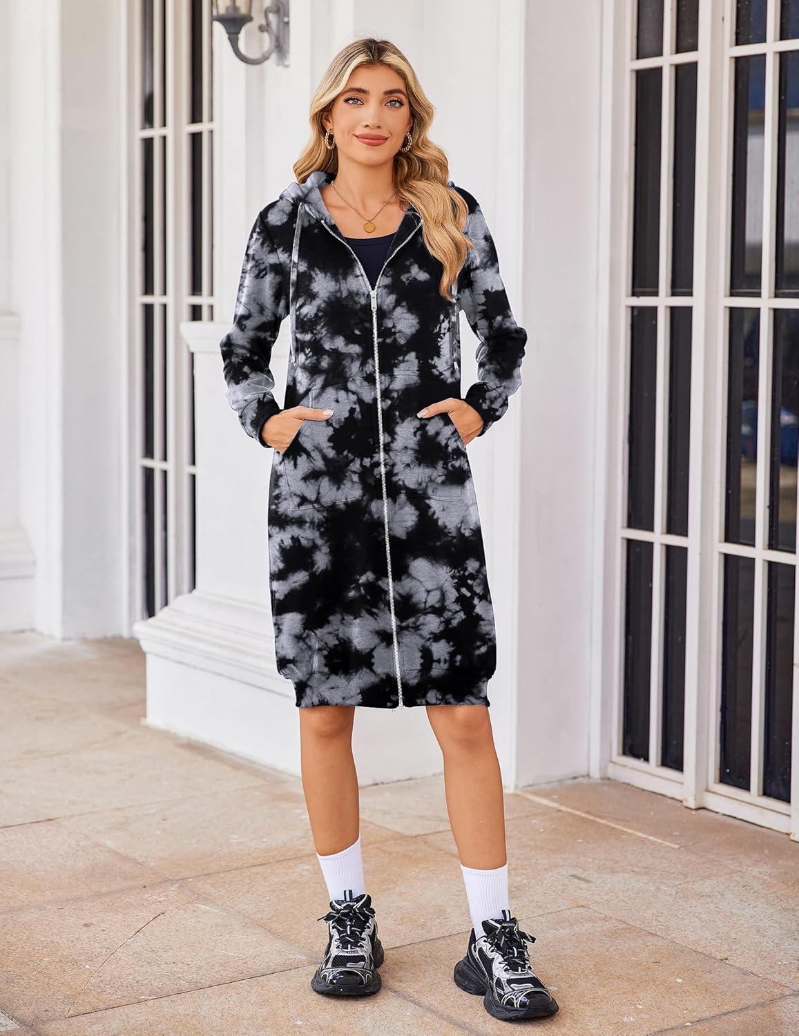 Zeagoo Women’s Zip Up Hoodies Oversized Fleece Long Tunic Sweatshirts Casual Long Sleeve 2026 Fall Hoodie Jacket Coat(Tie Dye)