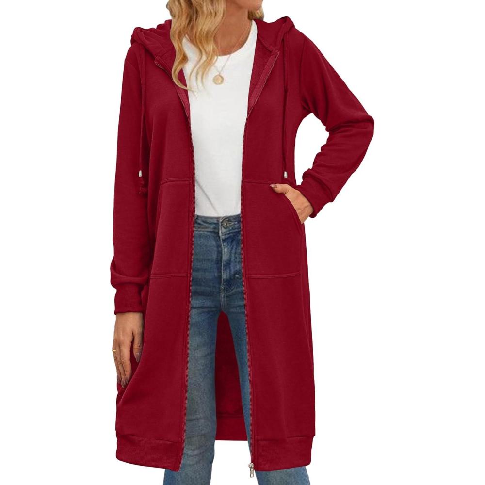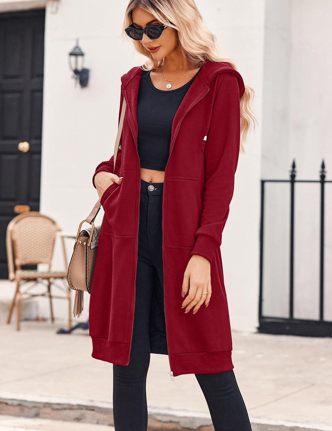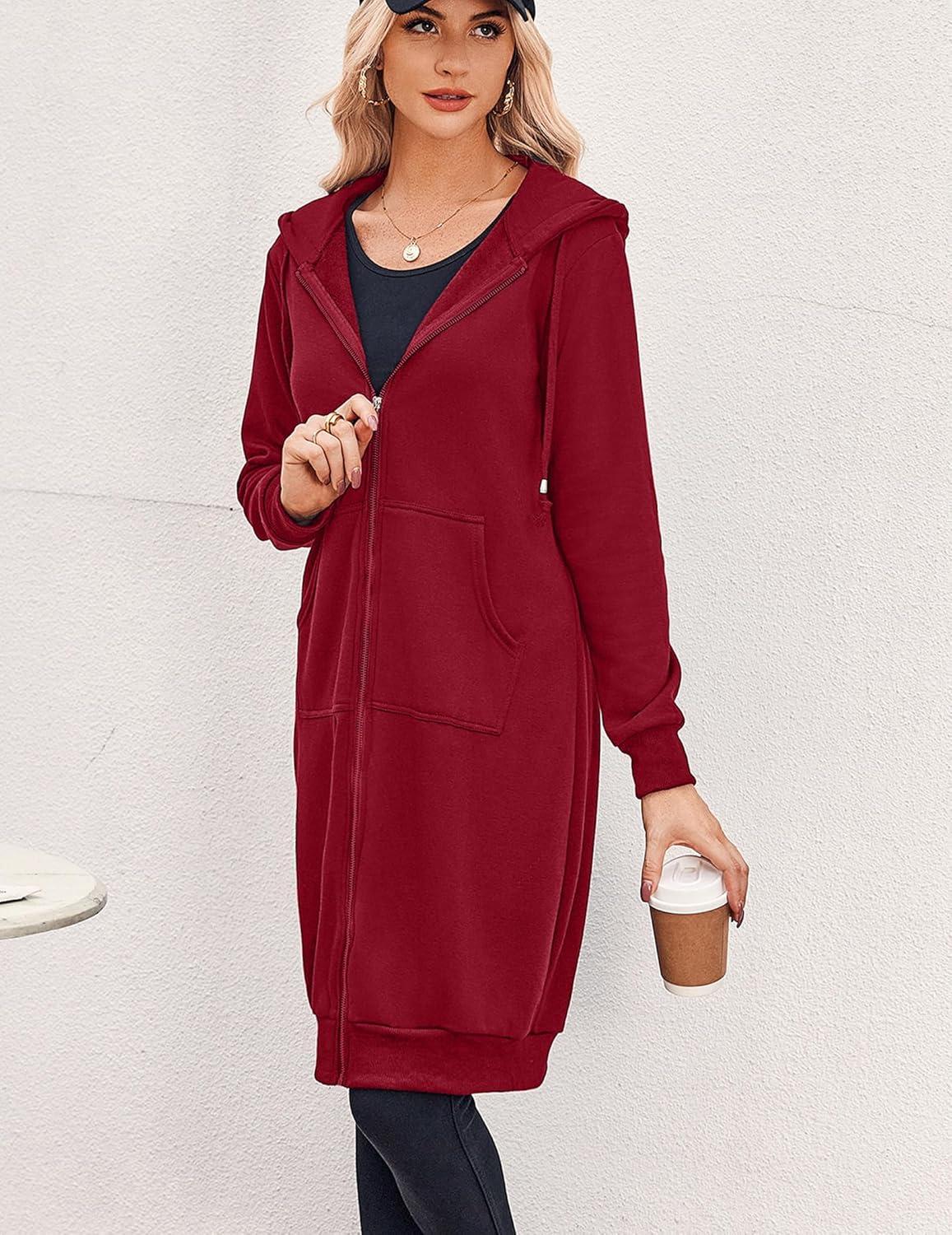 Zeagoo Women’s Zip Up Hoodies Oversized Fleece Long Tunic Sweatshirts Casual Long Sleeve 2026 Fall Hoodie Jacket Coat(Wine Red)